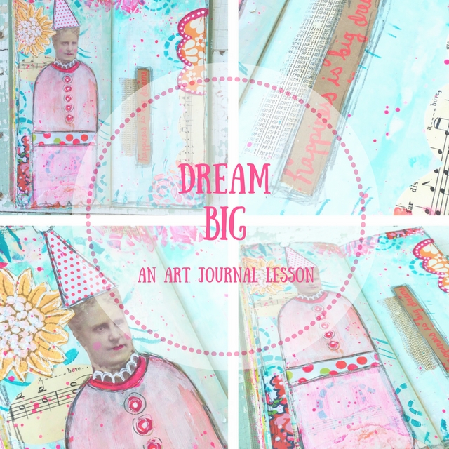 Come join me in the studio and create a fun art journal page with this lesson about dreaming big! We will get messy with paint, stencils, pens, collage, and more!